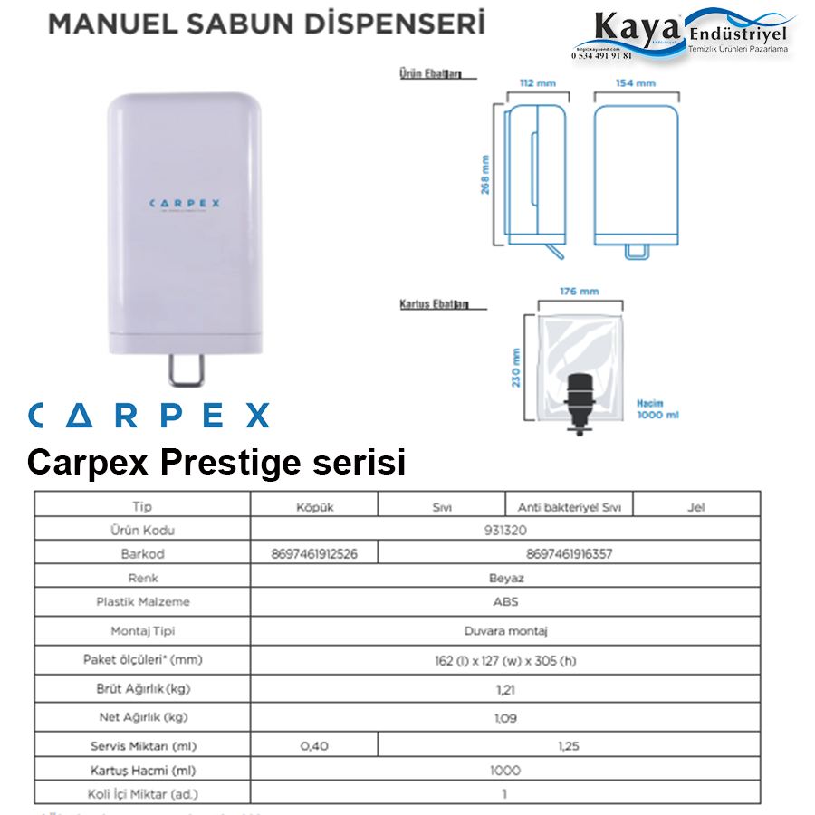 Carpex Beyaz Renk ve siyah renk seçenekli Prestige manuel Köpük & Sıvı Sabun Dispenseri