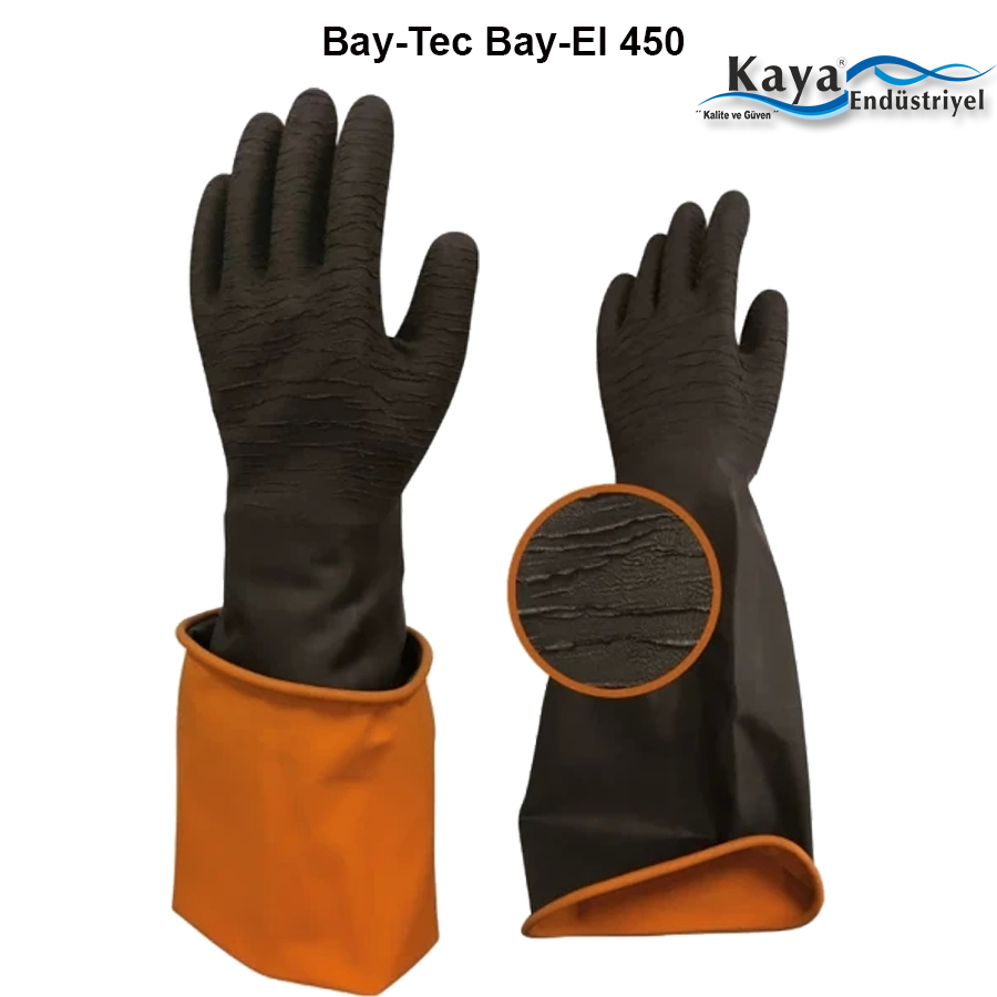 Bay-Tec Bay-El Kokusuz Pütürlü Uzun Kauçuk Asit Eldiveni 45CM Xl EL450