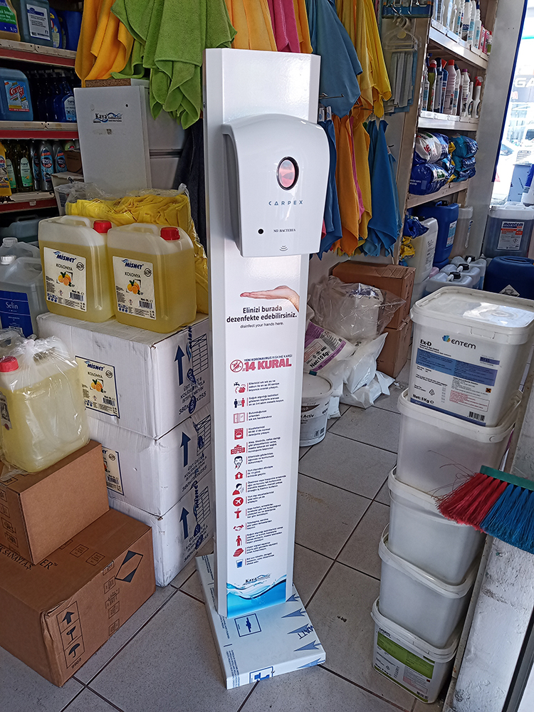 Sensörlü aparat CARPEX marka otomatik dezenfektan dispenseri her kullanım ‘da 0.02 ml dezentektan verir .Cihazımız 2 yıl garantilidir