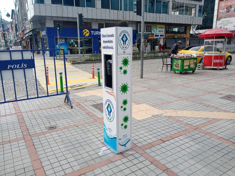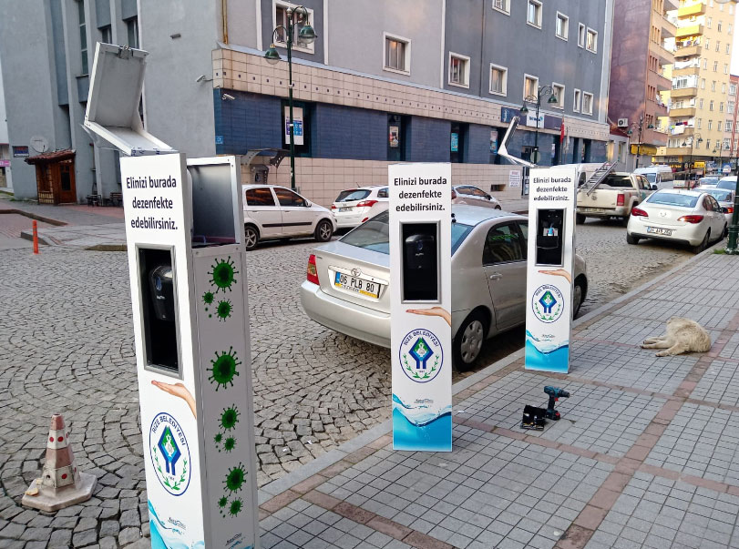 *SOKAKLARDA KULLANIMA UYGUN TASARLANMIŞ ÇİFT TARAFLI DEZENFEKTAN ÜNİTESİ.