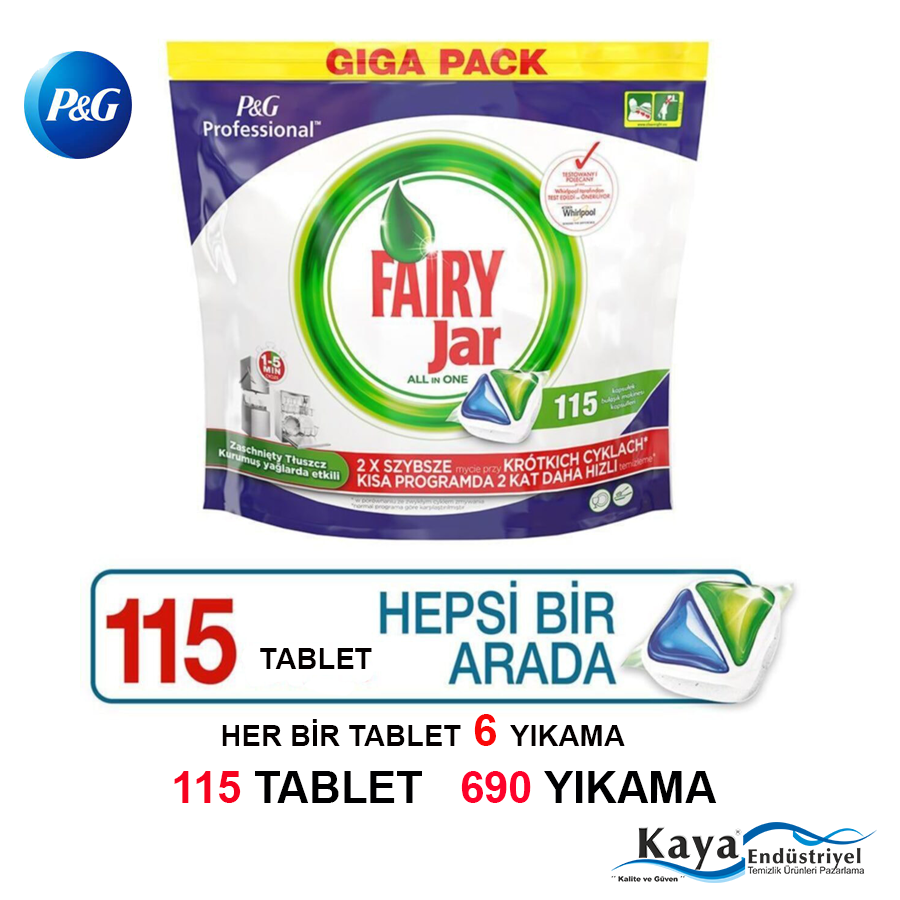 Fairy jar 115 Tablet Endüstriyel Bulaşık Makinesi Deterjanı her bir tablet 6 yıkama yapar toplamda 690 yıkama