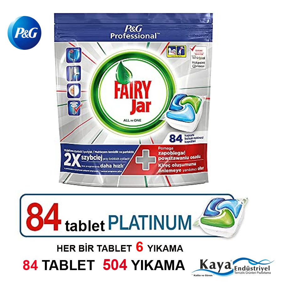 Fairy jar 84 Tablet Endüstriyel Bulaşık Makinesi Deterjanı her bir tablet 6 yıkama yapar toplamda 504 yıkama