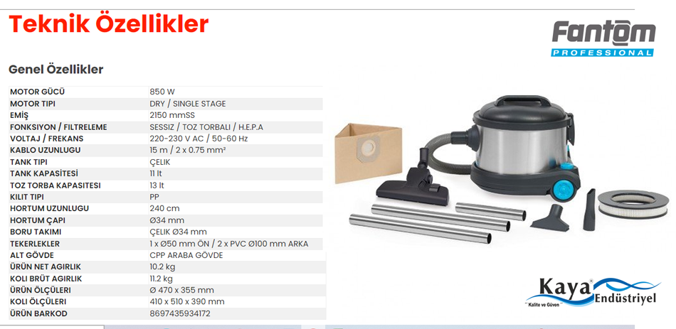 FANTOM PROMİNİ 100 M OTEL TİPİ SESSİZ TOZ TORBALI PROFESYONEL ELEKTRİKLİ SÜPÜRGE