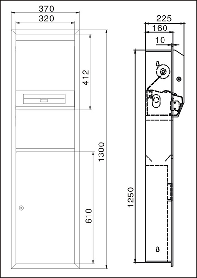 Xinda Paslanmaz GSG63B Ankastre Kombine Fotoselli Havlu Dispanser ve Çöp Kovası 23 litre