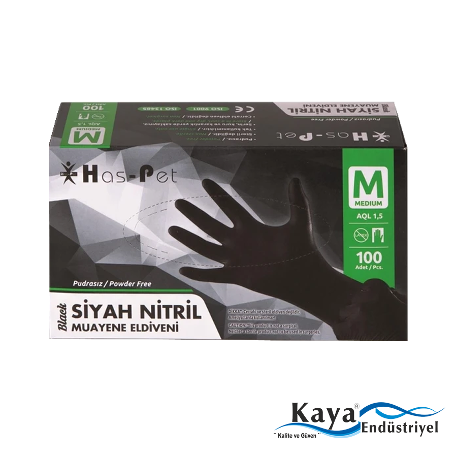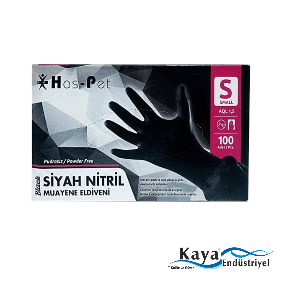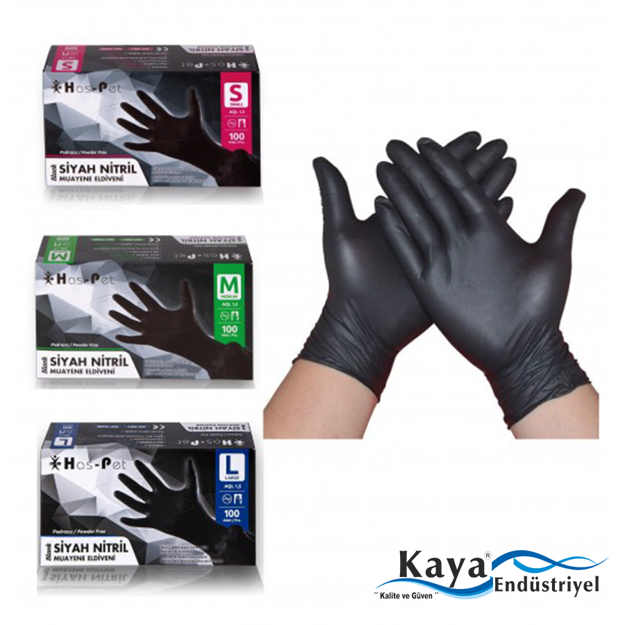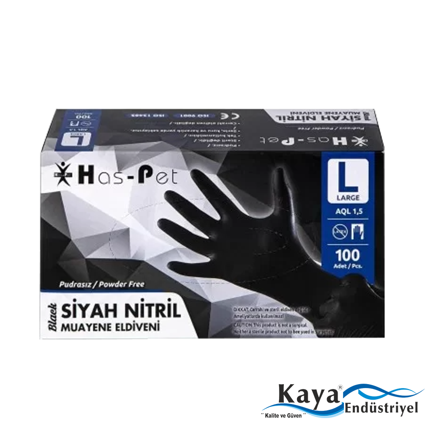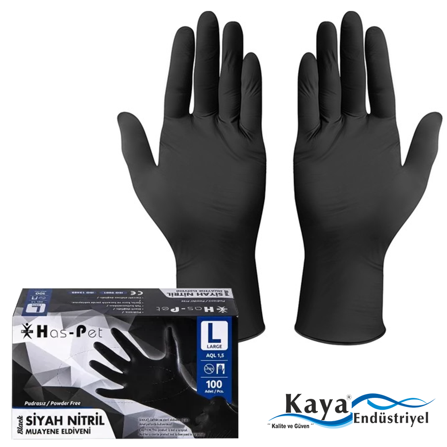 Has-pet Çok Amaçlı Siyah Nitril Eldiven (L) 100lü (Gıdaya Uygun)