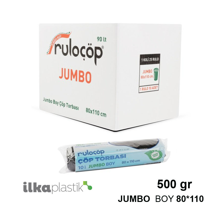 İLKA RULOÇÖP ENDÜSTRİYEL EXTRA JUMBO ÇÖP TORBASI POŞETİ SİYAH 62 MİC. 500 GR 80 X 110 CM