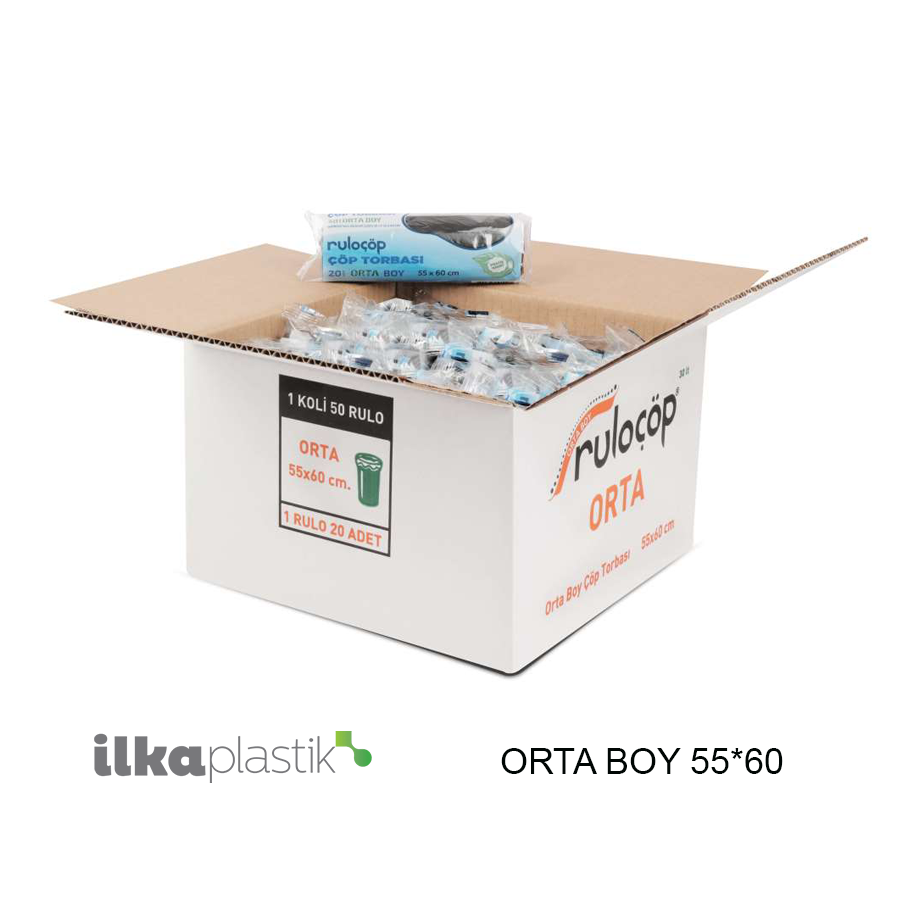 İlka Ruloçöp Çöp Torbası Orta Boy 55x60 SİYAH RENK 85 gr