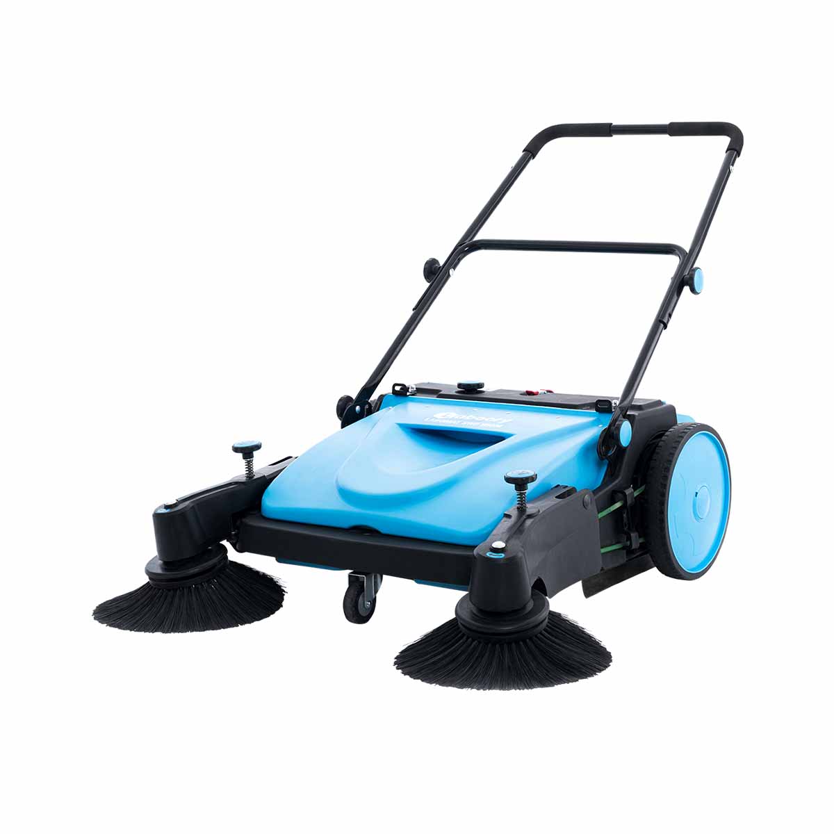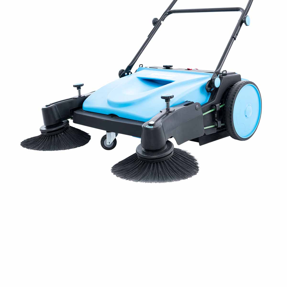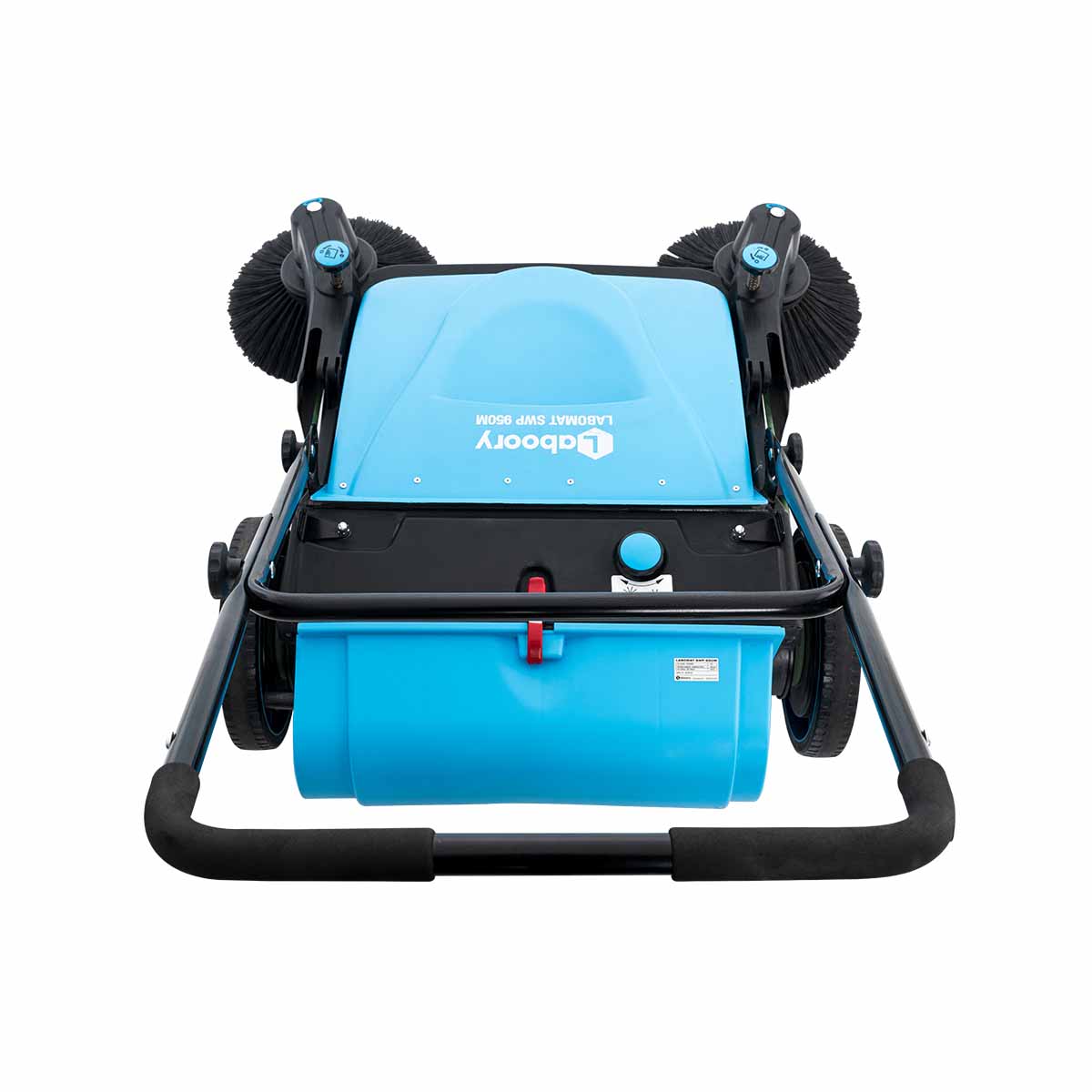 Labomat 950M Manuel arkadan iticili süpürücü, ortalama 3.000 metrekareden büyük iç ve dış alanların temizliğine uygun bir üründür. Yan fırçaları ile beraber 95 cm çalışma genişliğine sahip olup, arkadan itmeli ve son derece kolay hareket ettirilebilir kompakt bir süpürücüdür. Yan fırçası sayesinde köşe ve duvar diplerinin temizliği kolaylıkla yapılır. Ön ve yan kapaklar ayrıca çalışma esnasında tozun kalkmasını önlemede önemli rol oynamaktadır.