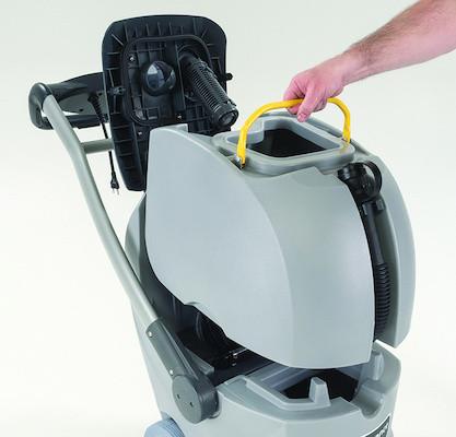 Ayrılabilir ve arttırılmış kapasiteye sahip kirli su tankı. Ergonomik, operatörün boyuna göre ayarlanabilen tutma kolu.