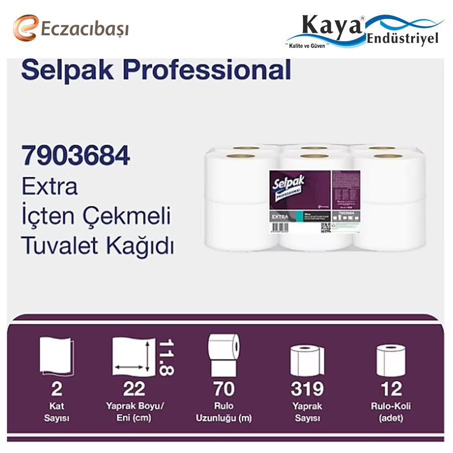 ECZACIBAŞI SELPAK Mini İçten Çekmeli Tuvalet Kağıdı 4 Kg 70 MT 12'li ÇİFT KATLIDIR.