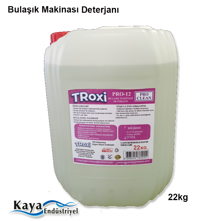 Endüstriyel bulaşık makinesi deterjanı.Endüstriyel sanayi tipi bulaşık makinelerine takılan dozaj pompaları ile kullanılır. Dozaj pompası su sertliğine göre belirlenen kullanım miktarını aynı tutar. Böylece yıkanan bulaşıklar hep aynı temizlikte çıkar. Tabaklarda oluşan ağır kir ve organik yağların, donmuş yağların ve kurumuş lekelerin temizlenmesinde kullanılan bulaşık makinası deterjanıdır.Kostik miktarı az olduğundan tabaklarda çizme yapmadan yağlı lekeleri kolaylıkla çözer.Uygun fiyat ile kaya endüstriyel de.