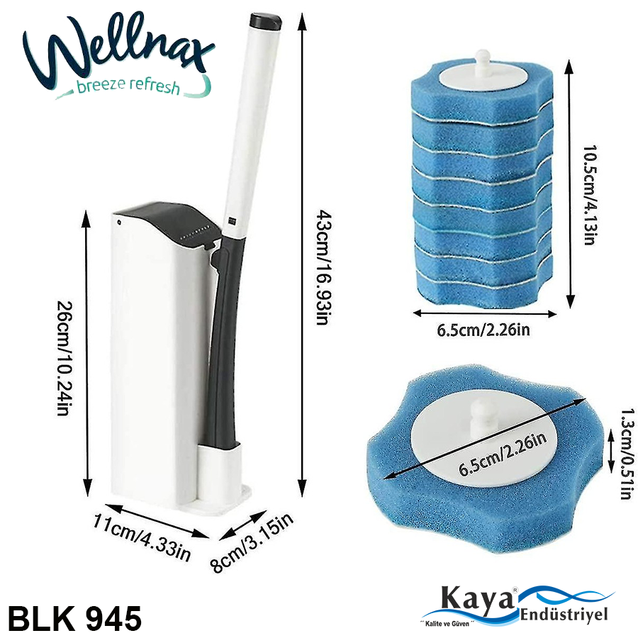 seçenek 1 blk 945 ürünü 1 adet plastik wc fırça kutusu 1 adet fırça sapı 10 adet deterjanlı sünger