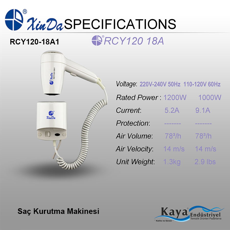 XINDA RCY120-18A1 KORDONLU SAÇ KURUTMA MAKİNESİ